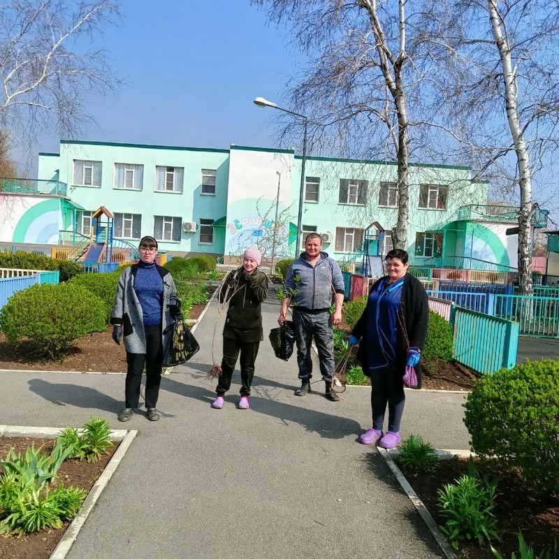 15.04.2022г в МБДОУ детском саду "Зёрнышко" прошёл весенний "День древонасаждения" сотрудники ДОУ приняли активное участие в высадке деревьев на территории.
