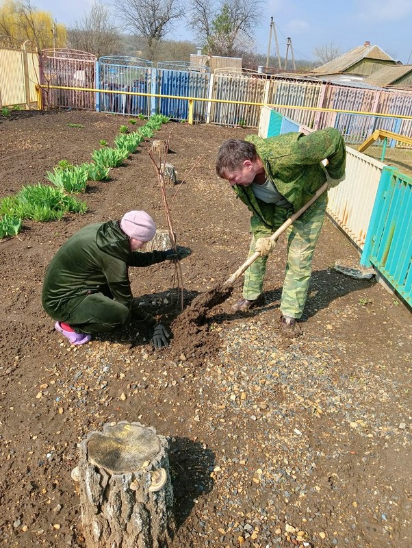 15.04.2022г в МБДОУ детском саду "Зёрнышко" прошёл весенний "День древонасаждения" сотрудники ДОУ приняли активное участие в высадке деревьев на территории.